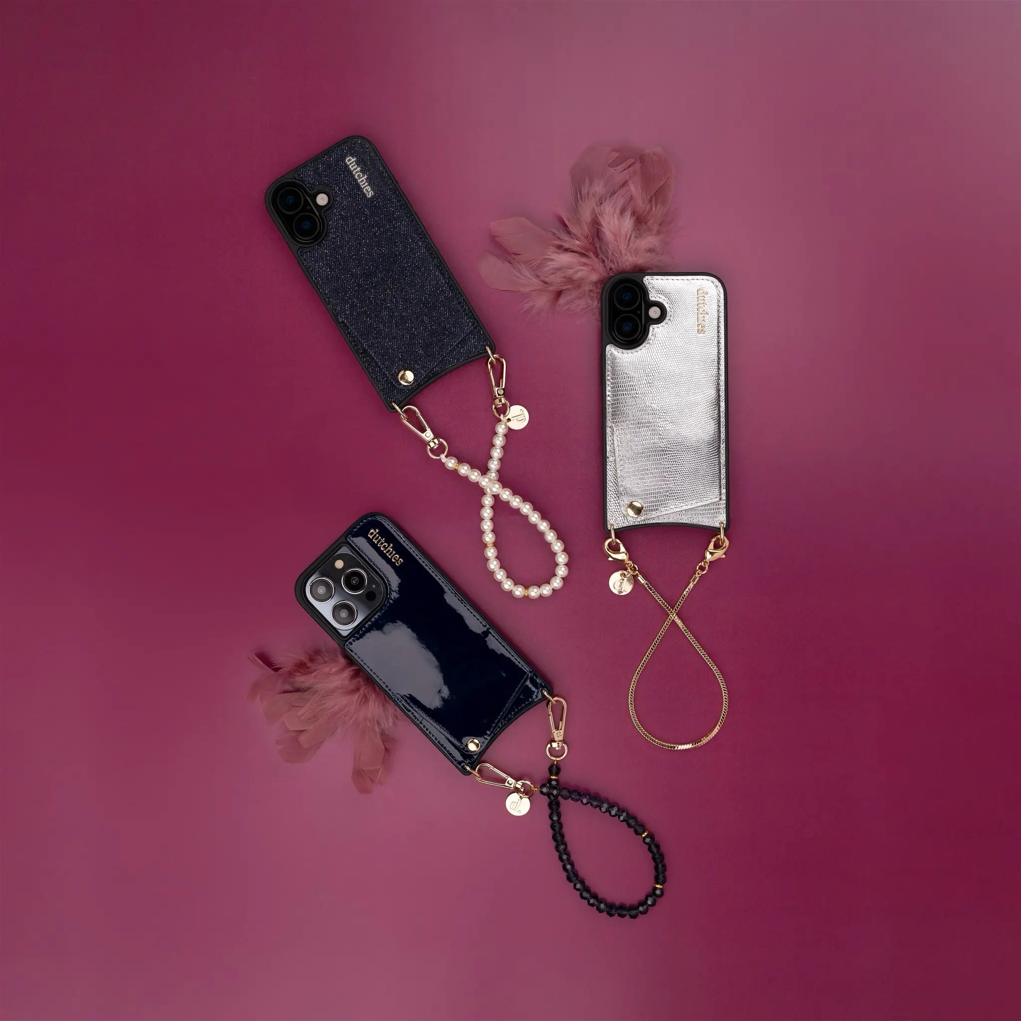 Complete your look with matching beaded chains and shimmering charms, made to let your phone steal the spotlight.