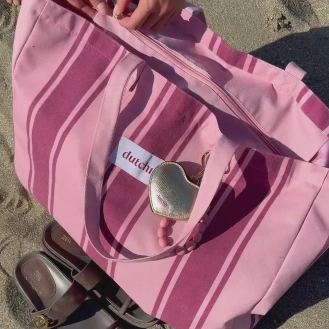 Was macht diese Tasche so typisch Dutchies? Du kannst sie ganz individuell gestalten! Beim Kauf erhältst du einen GRATIS Schlüsselanhänger dazu. Befestige ihn am Henkel und füge dein Lieblings-Dutchies-Handyzubehör hinzu – und schon wird dein Accessoire zu einem einzigartigen Bag Charm. Sofortiges Sommerfeeling 😎
