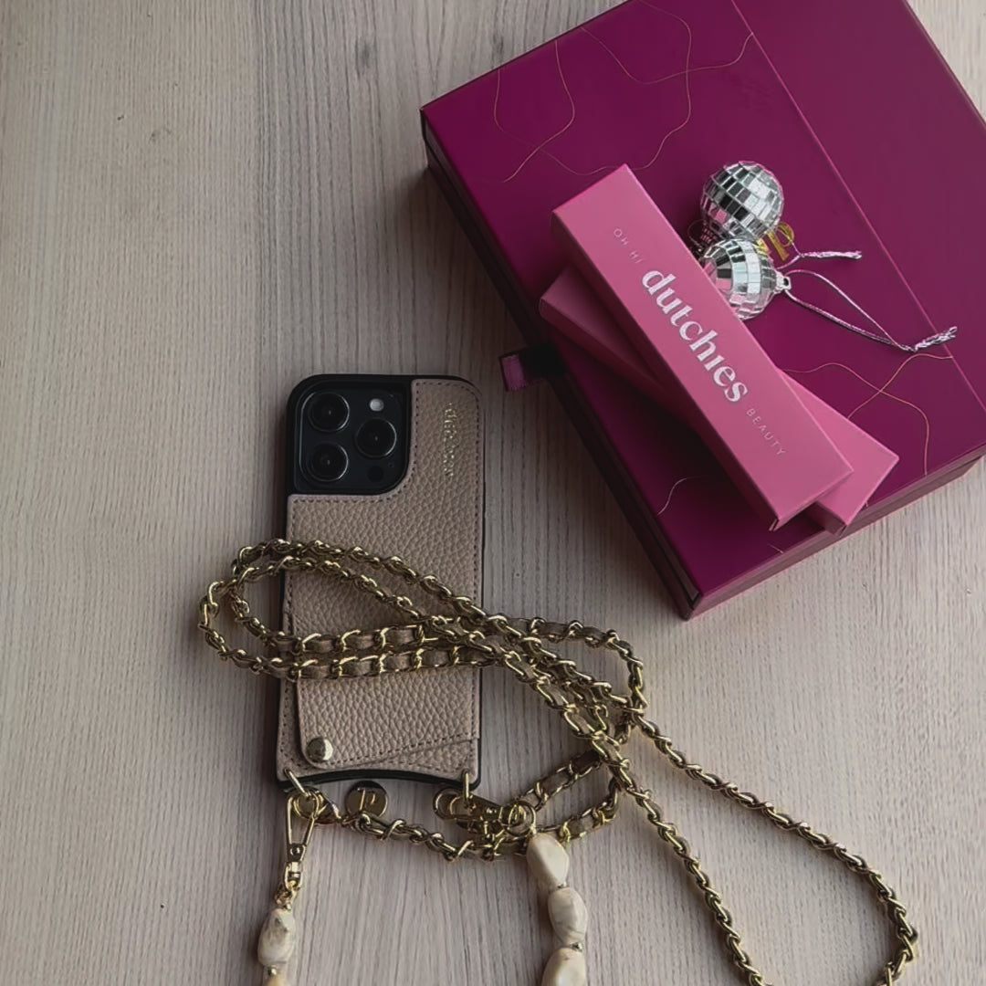 Les deux styles sont faits sur mesure pour iPhone et Samsung, offrant une défense sérieuse contre les chutes. Et avec une chaîne de téléphone attachée, vous réduisez encore plus le risque de chutes, votre téléphone reste en sécurité à vos côtés, les mains libres. Que vous soyez en route pour votre prochain rendez-vous, en évitant la pluie ou en faisant du vélo à travers la ville, votre téléphone reste en sécurité. C'est le design de Dutchies : intelligent, élégant et super fonctionnel.