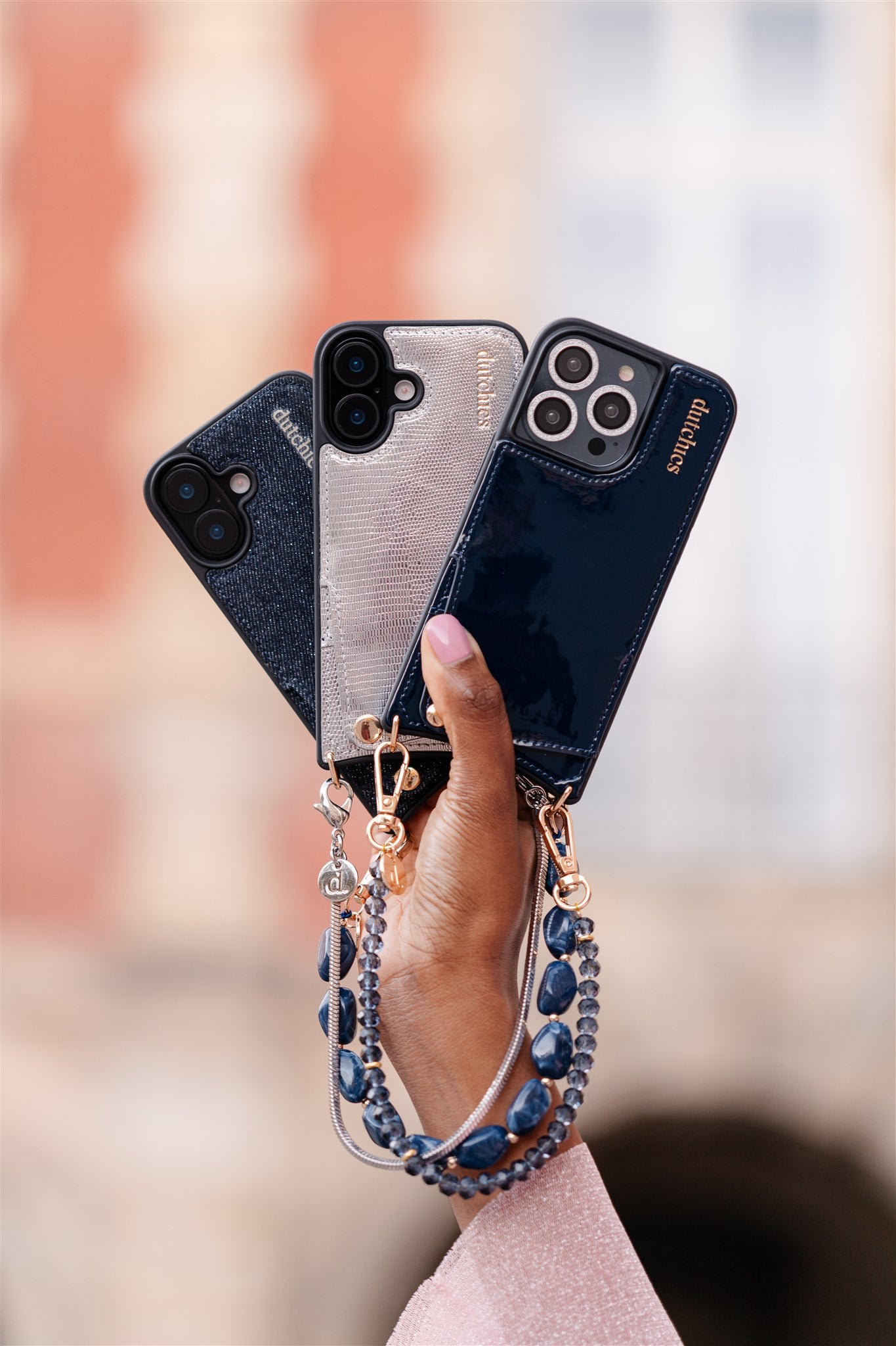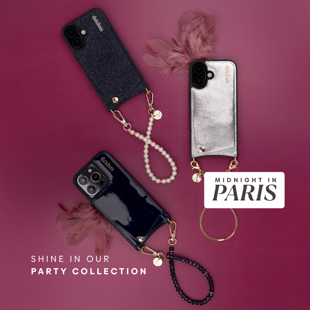 Ogni design cattura la magia scintillante di una serata a Parigi, unendo materiali di lusso a una brillantezza che si fa notare. Completa il tuo look con catene abbinate di perline e charm scintillanti, pensati per far brillare il tuo telefono.